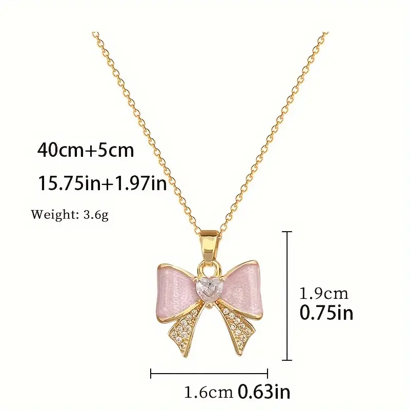 Women'S Elegant Stainless Steel Bow Pendant Necklace with Zirconia Gemstones, Ideal for Daily Wear And Gifts, Age 14+ - Hypoallergenic Plated Jewelry